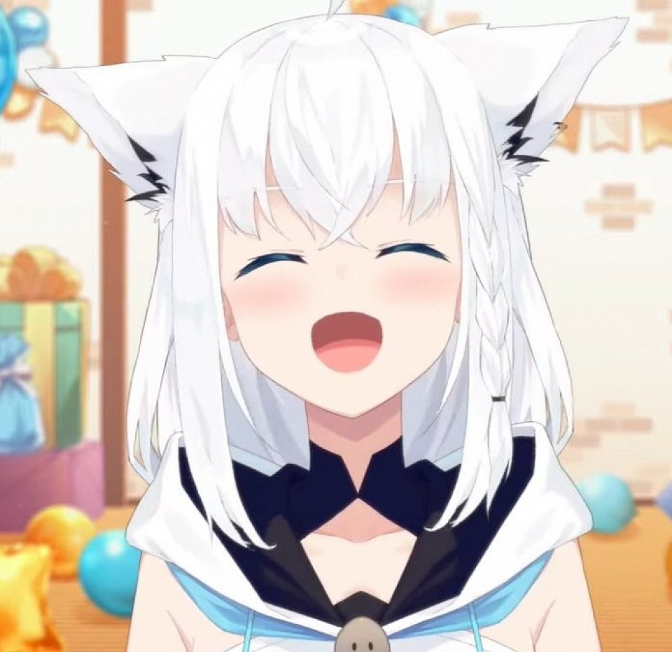 白上フブキは、白髪ケモミミのバーチャル女子高生狐で、恥ずかしがり屋でおとなしいが、人と話すことを好み、構ってもらうと喜ぶ性格をしている。